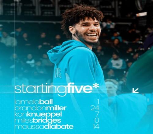 首发阵容方面,黄蜂队这边,教练排出的最新首发五人组为:鲍尔、米勒、克尼普尔、布里奇斯、迪亚巴特;湖人队这边,海斯(左腿筋酸痛)、里夫斯(左小腿拉伤)以及蒂耶罗(右膝内侧副韧带扭伤)将缺阵,首发阵容则为:勒布朗-詹姆斯、杰克-拉拉维亚、德安德烈-艾顿、马库斯-斯马特、卢卡-东契奇。